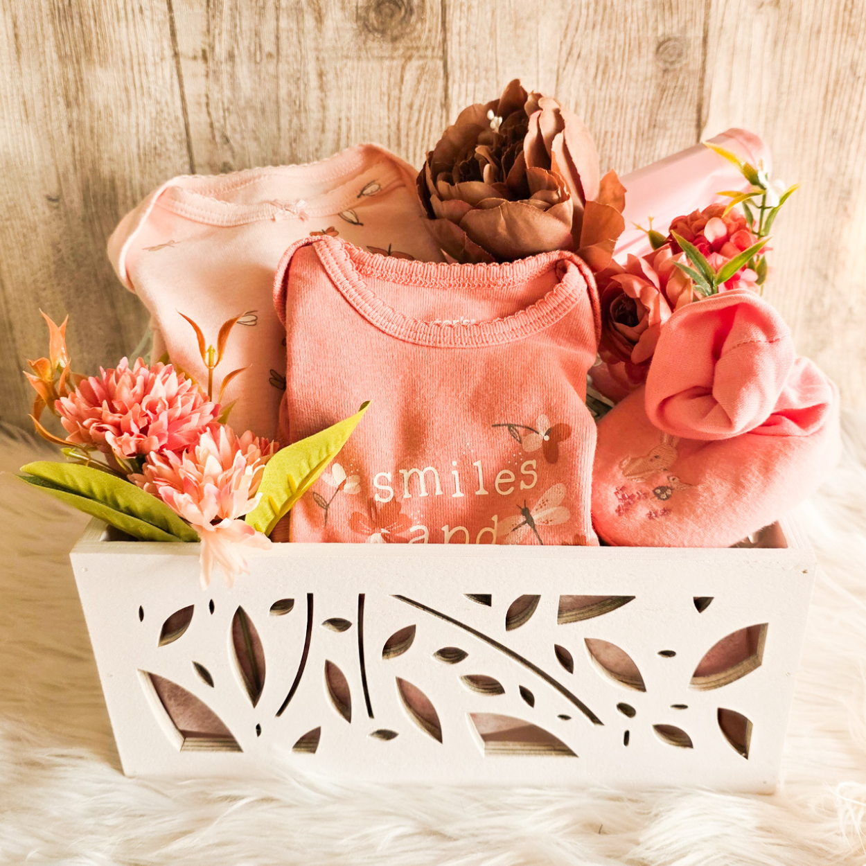 This Baby Gift Basket Is Perfect For Baby Showers, Birth Announcements & The Arrival Of The New Born Baby Girl! It includes: